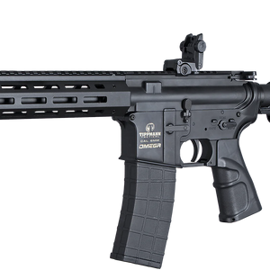 - New V2 Model with: Rotary Hop-up New Bolt and Bolt Tip Air Chamber Adjustable Dwell Magwell ASA The Tippmann Omega PV Electro Pneumatic CQB Compact is a high performance, versatile airsoft rifle which combines the best of gas and electric! Powered by a small canister fitted inside the buffer tube that hold two 12gram CO2 cartridges. A check valve allows removal of the canister without losing gas. A standard 9 volt battery provides reliable fast trigger activation. Features solid aluminum construction, realistic M4/AR styling with flip-up front and rear adjustable sights, M-Lok Rail System, adjustable rate of full auto fire and adjustable stock. Comes complete with 12gram CO2 Cartridge setup, 120rd Magazine, Owner's Manual and the Tippmann 1 Year Limited Warranty. Features: Run on two 12gram CO2 cartridge (inside the buffer tube) Full Metal Receiver, Barrel and Internals Adjustable Velocity (300-400fps) Adjustable Hop-Up Firing Modes: Safe/Semi/Full-Auto (Preset ROF 10, 15, 25) Adjustable Front and Rear Flip-Up Sights Front and Rear Sling Mounts Tool-Less Mag Disassembly Full Length Top Picatinny Rail Modular Foregrip with Quad RIS Rails Combat Glass Filled Nylon Grip Adjustable Stock Comes with 120 round Magazine. Will accept most M4 Magazine In Grip Standard 9 volt battery (Not Included) Can Run on Remote Gas (Requires Optional Stock and Bottomline Adapter) Can Run on 13ci 3000psi Tank In Stock (Requires Optional Stock/Adapter) Accepts Most Industry Standard AEG Inner Barrels Threaded Flash Suppressor (M14x1.0 CCW)