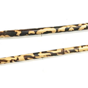 - Burned Rattan, With Skin PAIR (2 sticks) Combat Escrima Kali Arnis burned rattan sticks with drawstring carrying case. This is our BEST all-around stick and quite possibly the finest rattan stick on the market! Heavier and more durable than most Escrima sticks on the market! Constructed of select rattan with skin and fire-hardened for additional durability. Burned in the traditional manner and double clear coated for added durability! Ideal for all-around contact training and tournaments. With reflective, silver mylar 'Retina Retention Tape' on each end. Measures 28" long and .9" - 1.15" in diameter. 7-11 oz per stick. Burn pattern may vary from picture.NOTE: This is a natural product, not machine straightened rattan as is used in the furniture industry (significantly less durable). Stick diameter is approximate and can vary by up to 1/4". Sorry we CANNOT guarantee an exact diameter. Also; it is NOT possible to provide perfectly matched sticks in either weight or diameter.
