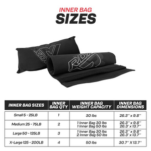 - Each bag comes with the right number of sandbags to achieve your desired weight.