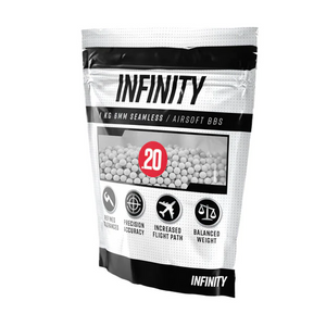 - 5000 6mm BBs. The Infinity 0.20g airsoft BBs are precision 6mm plastic BBs from Taiwan that are highly polished and seamless BBs for 6mm airsoft rifles and airsoft pistols. Their ball bearing quality precision gives the flight path greater accuracy and consistency. The Infinity airsoft BBs are packaged in a 1 kilogram resealable bags.