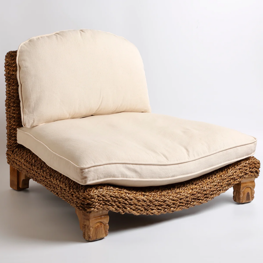Now made from woven Banana leaf weave and solid mango wood the Serenity Meditation Chair is an ecological and elegant seating concept for meditation or everyday use. The cushion is filled with natural Kapok for a firm and supportive feel. The cream cover is 100% cotton and removable for washing. Meditation Chair Covers can be purchased separately and are available in a variety of colors.