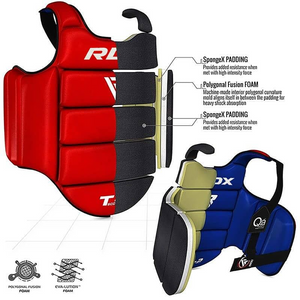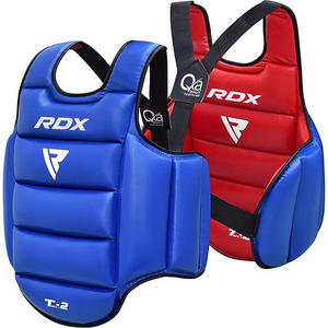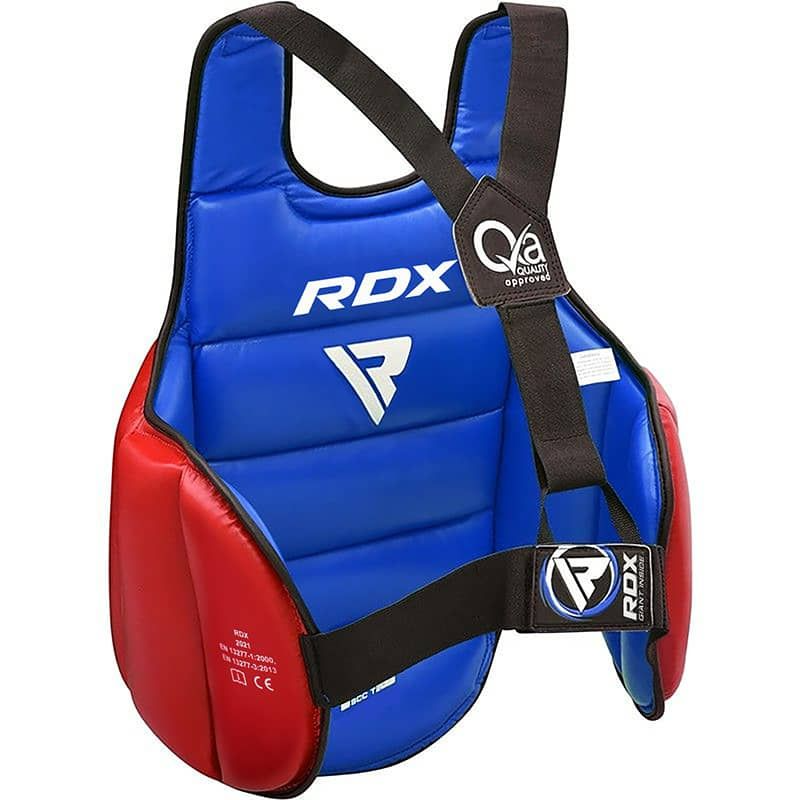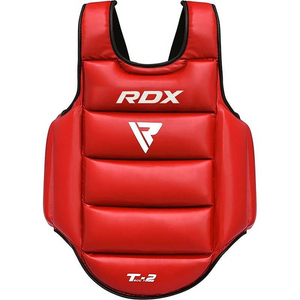 Bringing innovation and tradition together. RDX’s latest double-sided Taekwondo chest protector is designed to integrate the hi-tech shock-absorbency of the modern world into the classically powerful kick based martial art of TKD. Maya Hide leather is patented and scientifically sound in combating wear and tear. Super-compressed laminated padding with foam results in an agile, durable and long-lasting chest guard protector that is unbreakable and will stand against anything you throw at it (Double-sided) (SMALL/MEDIUM SIZES RECOMMENDED FOR UP TO 14 YEARS OF AGE)